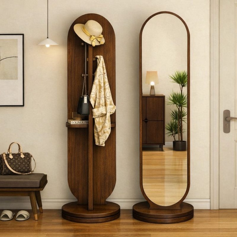 Espejo Cuerpo Entero Giratorio Con Perchero 168x30x36 Color Nogal Oscuro
