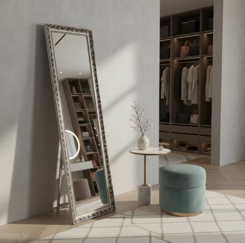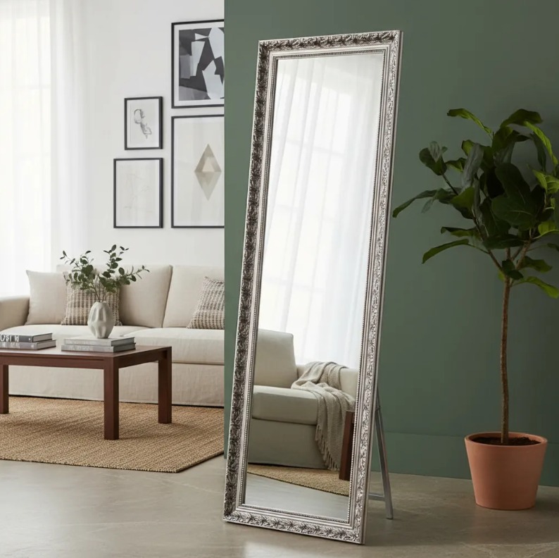 ESPEJO ATRIL COLOR PLATA CON APLICACIONES EN LEVES COLORES TINTEADOS, PRECIO OFERTA 🔥$39.990🔥