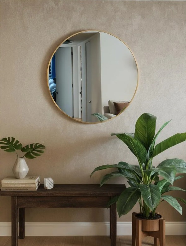 Espejo Circular 60 Cm Ø, Marco Metal Cepillado, Dorado/negro