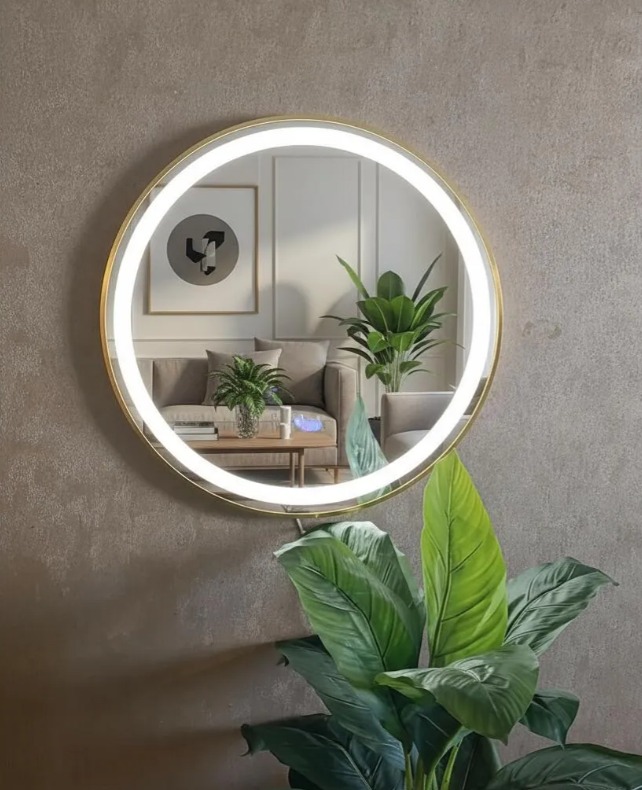 Espejo Touch Led Redondo 60 Cm Ø Marco Metal Cepillado Dorado/Negro