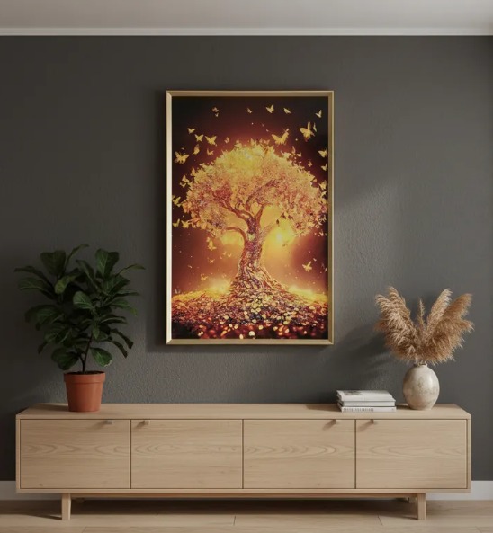 Cuadro Arbol Mariposas, Pintura Diamond, Marcodor 90x60x3cm Multicolor