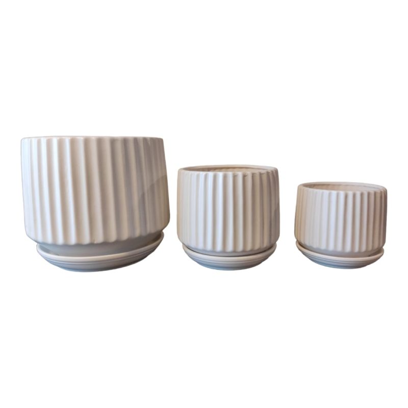 SET DE 3 MACETEROS CERAMICA DISEÑO EDICION MEDITERRANEO BLANCO, CADA UNO INCLUYE SU PLATO Y ORIFICIO PARA DRENADO DE AGUA,🔥$19.990🔥