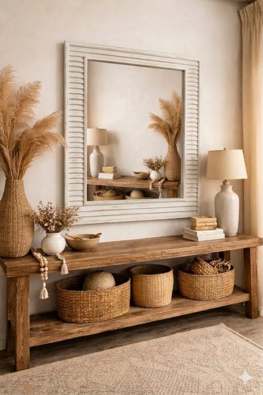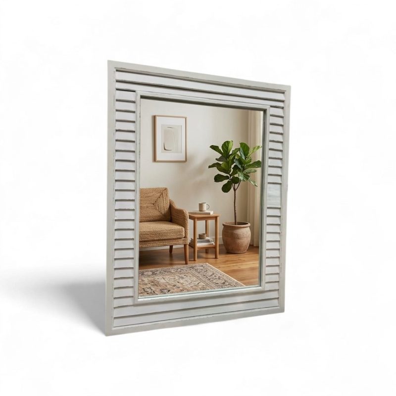 Espejo Mediterraneo Marco Madera Blanco Envejecido 118×86 Cm