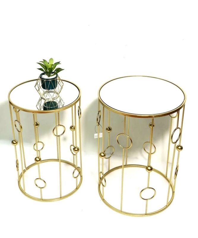 Set 2 Arrimos Metalicos Dorados Con Base Espejada