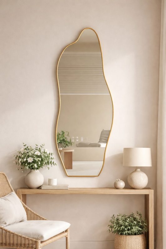 Espejo Asimetrico Pared Dorado/negro 100×38 Cm