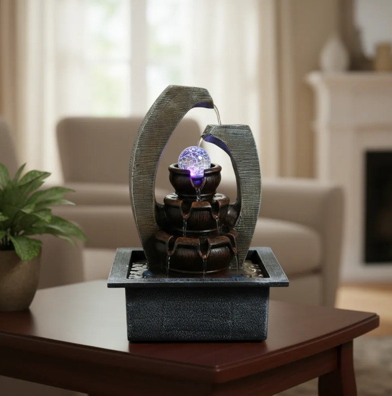 Fuente De Agua Diseño Medieval Con Luz Y Esfera, 35 Cm Alto