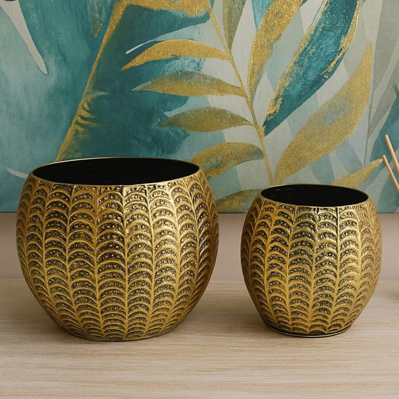 Set Maceteros Metal Dorado Grandes