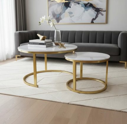 Set Mesas Tipo Nido, Metal, Cubierta Símil Mármol 70 Y 50cm/Mod#2 $129.990 El precio original era: $129.990.$89.990El precio actual es: $89.990.