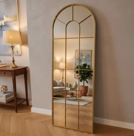 Espejo Atril Forma Ventana Estructura Metal Dorado 170x60 Cm $129.990 El precio original era: $129.990.$99.990El precio actual es: $99.990.