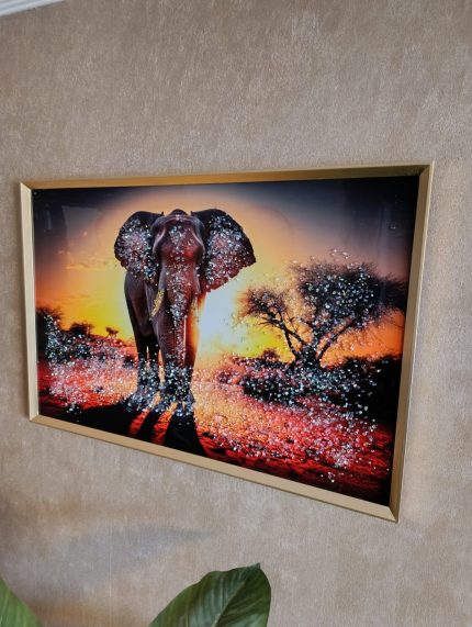 CUADRO ELEFANTE CAMINANDO, ESTILO PINTURA DIAMANTE 5D RELIEVES, MARCO DORADO. 81X61X3 CM. 🔥$32.990🔥