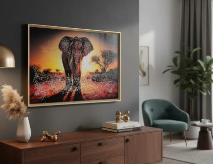Cuadro Elefante Atardecer En África Pintura Diamon 91x61x3cm