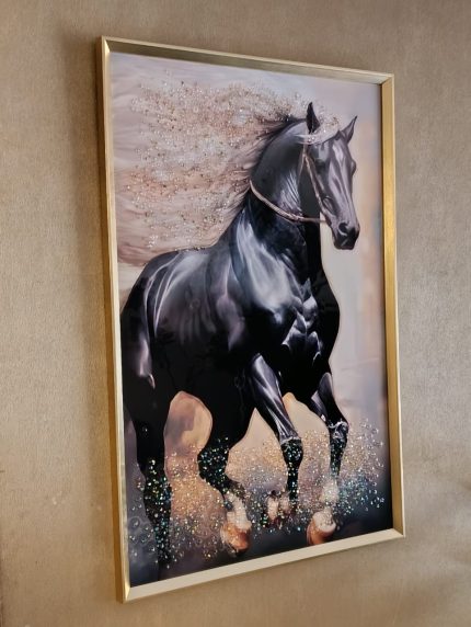 Cuadro Caballo Negro Azabache Estilo Diamond,91x61x3cm