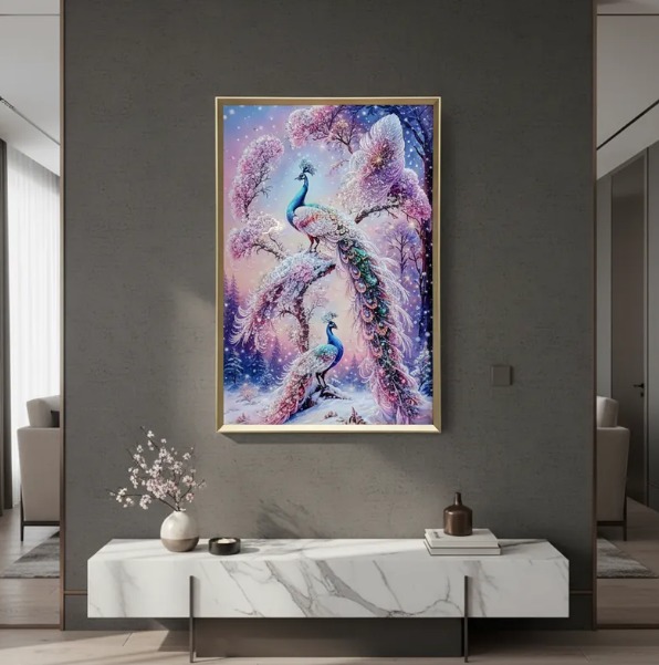 Inicio Cuadro Cuadro Pavos Reales Snow, Pintura Estilo Diamond, 91x61x3cm