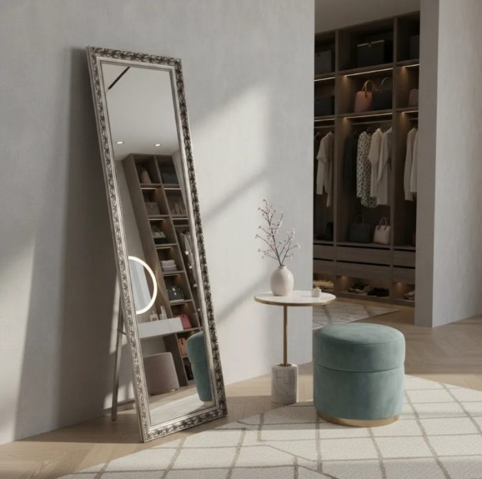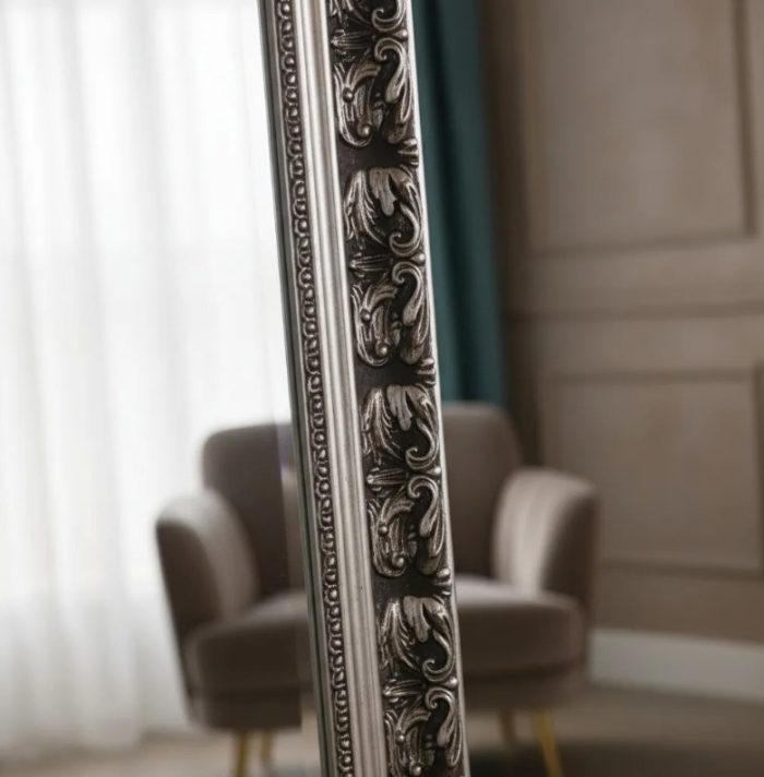 ESPEJO ATRIL COLOR BLANCO CON APLICACIONES EN COLOR PLATA, PRECIO OFERTA 🔥$29.990🔥 147X36.5X2 CM $32.990 El precio original era: $32.990.$29.990El precio actual es: $29.990.