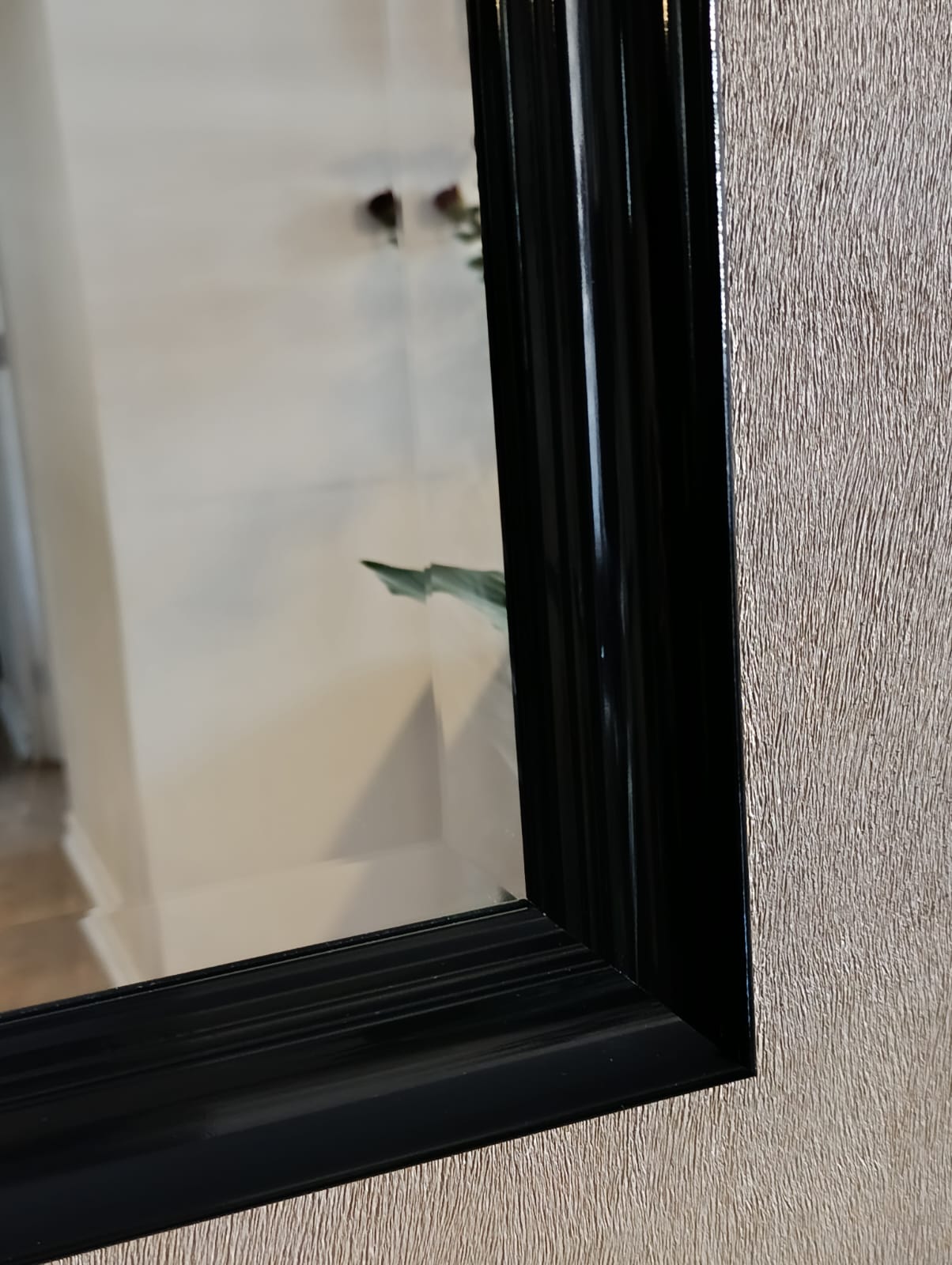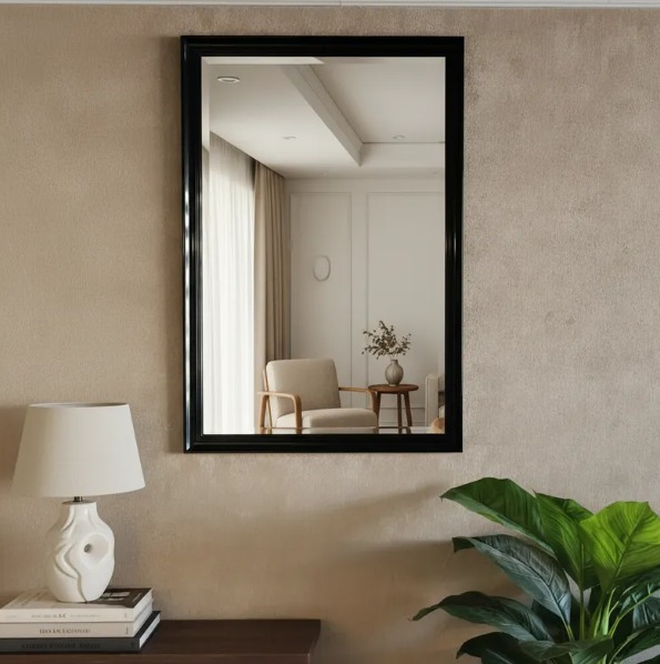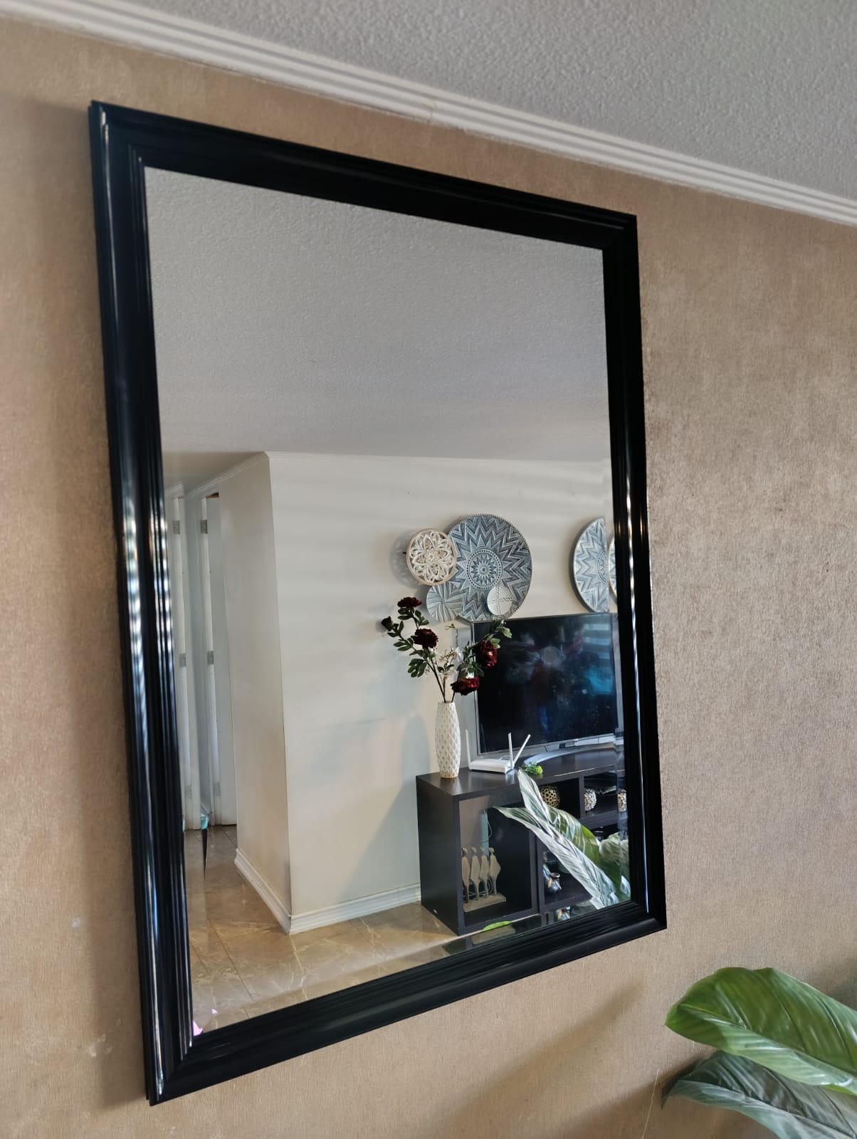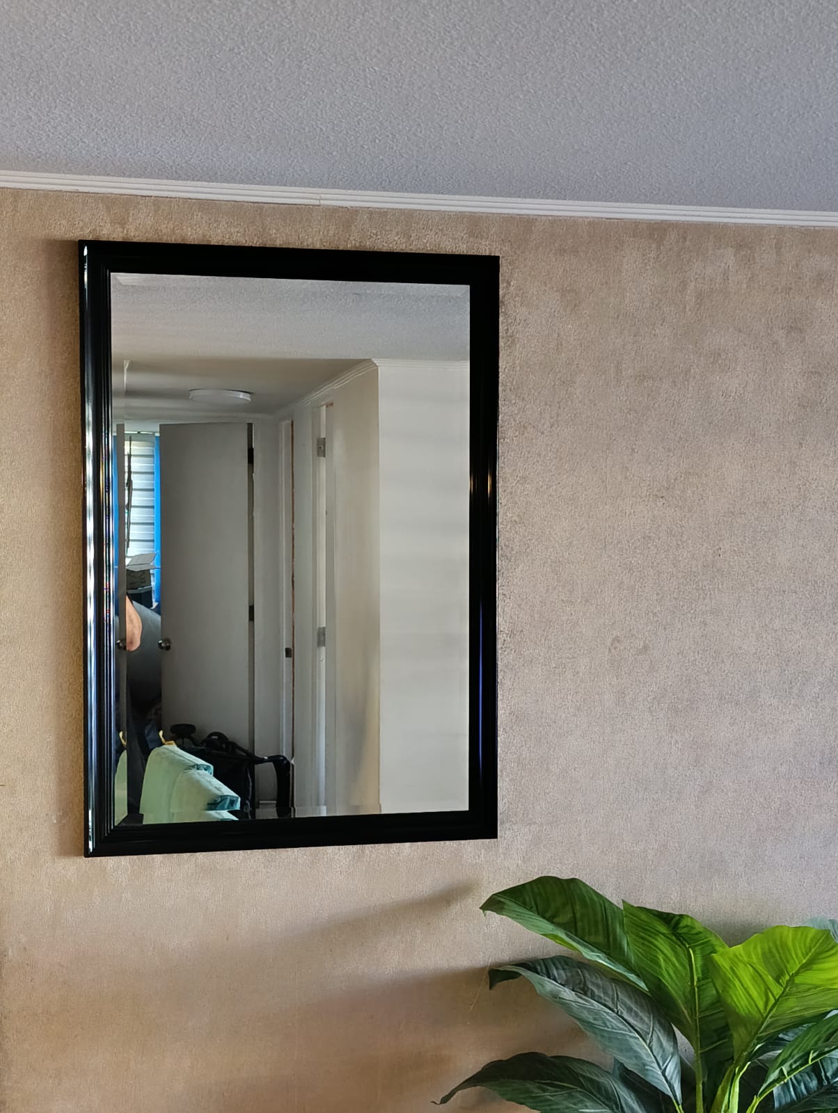 El espejo biselado IVORY BLACK es una pieza elegante y funcional que se adapta a diversos espacios de tu hogar. Con unas dimensiones de 98×63 cm, su diseño rectangular y su marco en color negro marfil aportan un toque clásico y sofisticado a cualquier habitación. Ideal para el dormitorio, baño o living, este espejo no solo es un elemento decorativo, sino también una herramienta práctica para el aseo personal.