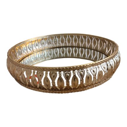 Hermosa Bandeja Metal Modelo Arabian Dorado Con Espejo 23 Cm Diametro $21.990 El precio original era: $21.990.$17.990El precio actual es: $17.990.