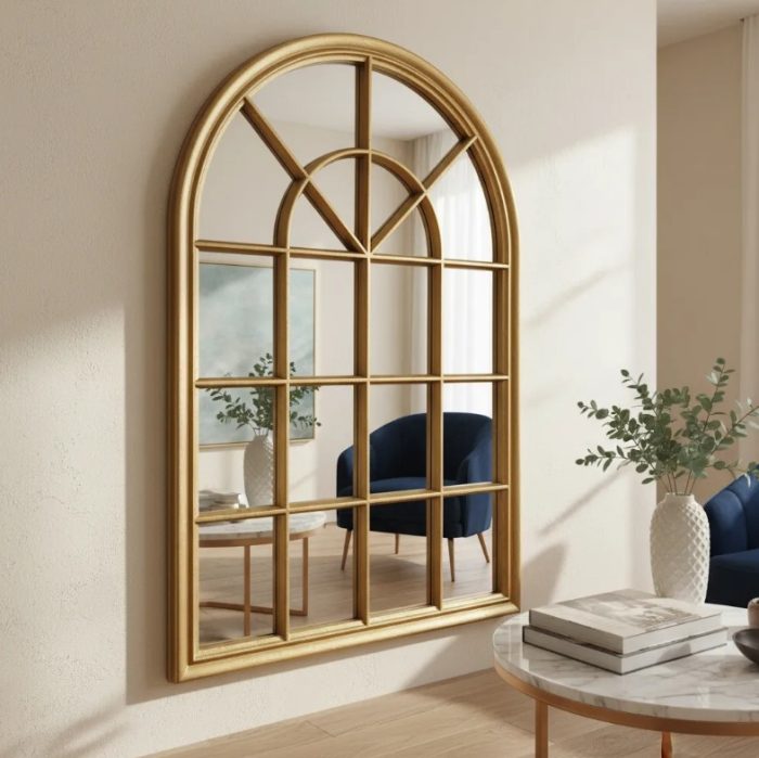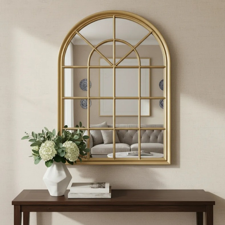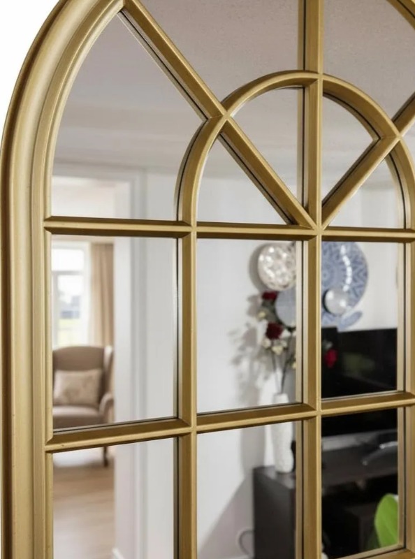 HERMOSO ESPEJO EN FORMA DE VENTANA DORADO 97X65CM, ESPECIAL PARA DECORAR TU LIVING, COMEDOR, HABITACION O PATIO INTERIOR.