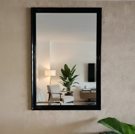 Espejo Biselado 98x63x3 Cm Marco Pu Color Negro Marfil