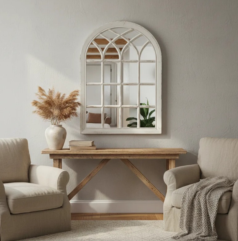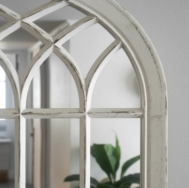 HERMOSO ESPEJO FORMA VENTANA BLANCO INVERNO ENVEJECIDO VINTAGE 51X71 CM