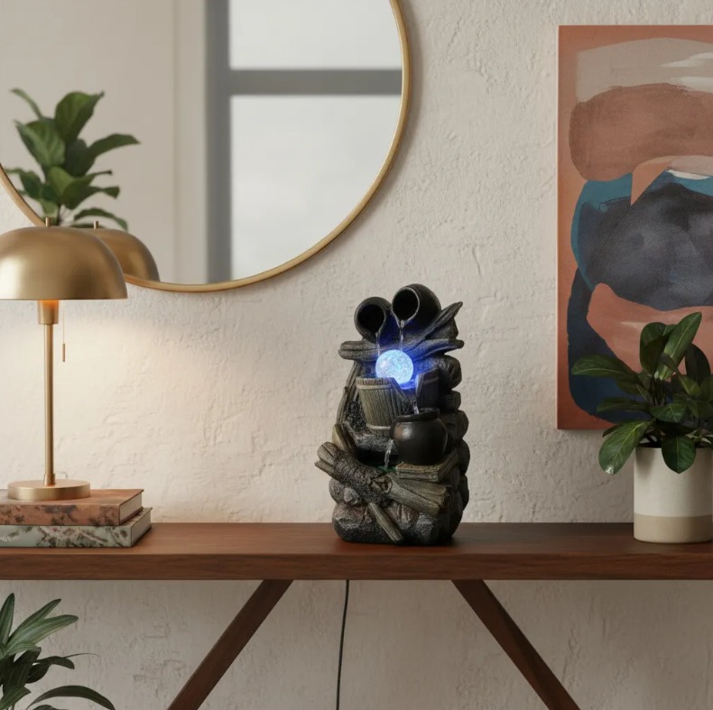 *Fuente De Agua Diseño simil piedra, incluye luz Led y esfera Cristal.