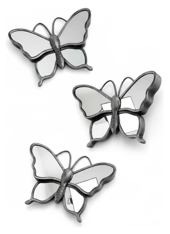 HERMOSO SET DE 3 ESPEJOS EN FORMA DE MARIPOSAS, CADA UNO MIDE 19 CM DE ALTO Y 25 CM DE ANCHO, IDEAL PARA DECORAR DE FORMA NOVEDOSA CUALQUIER HABITACION O ESPACIO DE TU HOGAR U OFICINA.