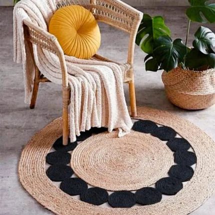 ALFOMBRA DE YUTE CIRCULAR BICOLOR, 120 CM DIAMETRO PRECIO OFERTA 🔥$32.990🔥
