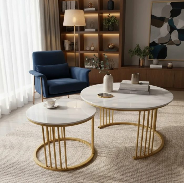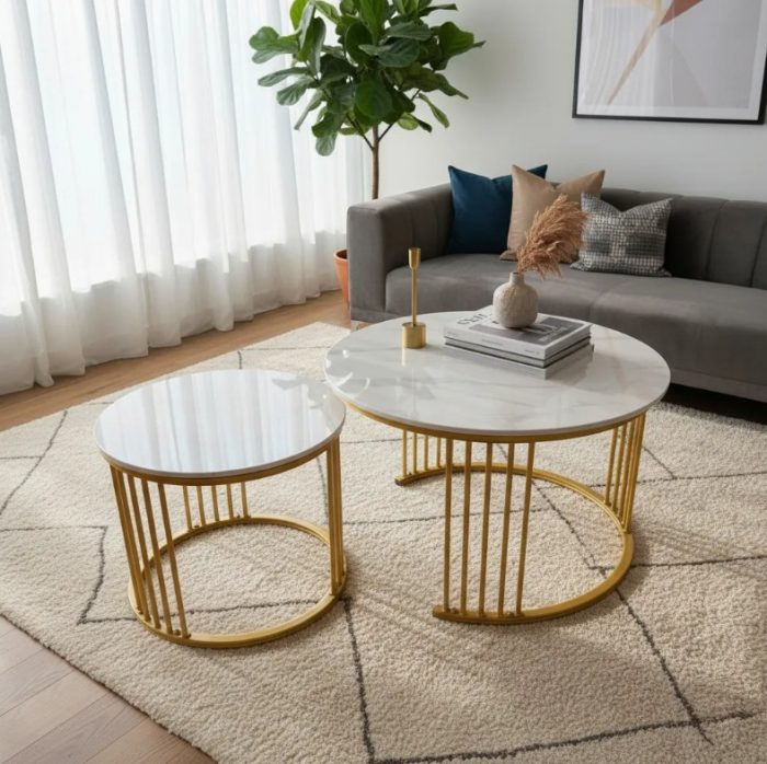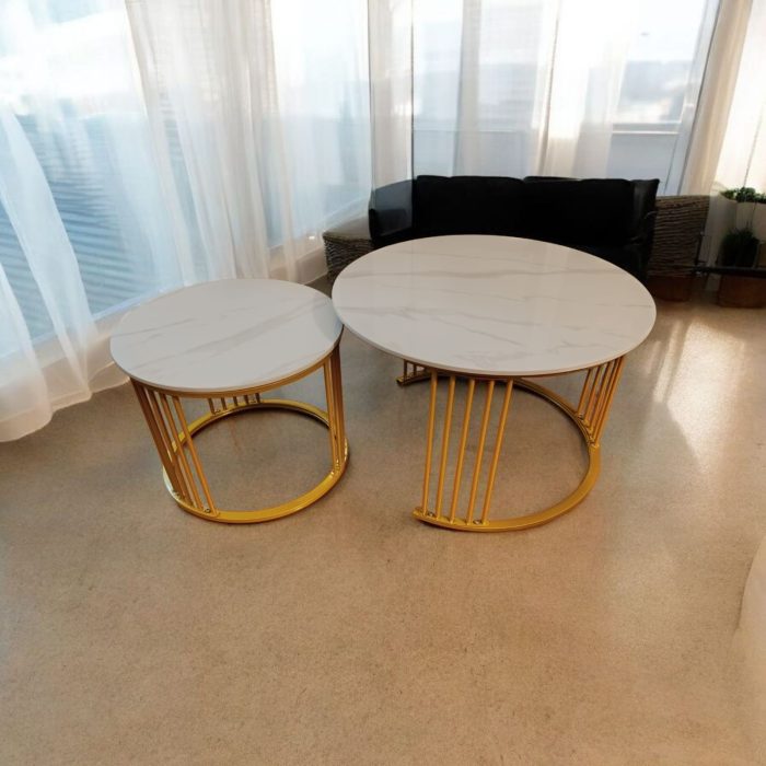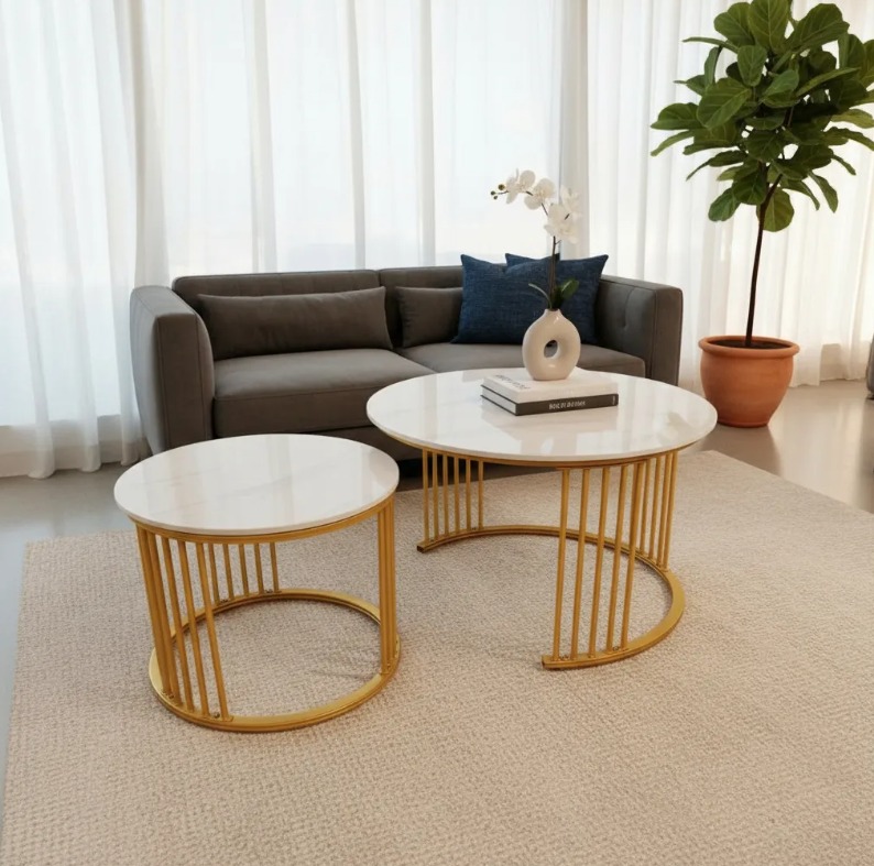 La Mesa Centro Nido de estilo moderno es la elección perfecta para quienes buscan funcionalidad y elegancia en su hogar. Este set de dos mesas, con diámetros de 70 cm y 50 cm, ofrece versatilidad en espacios reducidos, permitiendo su uso conjunto o por separado según sea necesario. Con una estructura de metal resistente y una tapa de símil al mármol, estas mesas no solo son robustas, sino que también aportan un toque sofisticado a cualquier entorno.